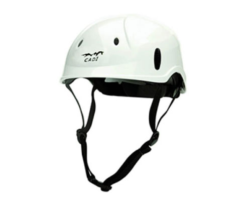 Casco de seguridad para trabajos de altura. Fabricado en ABS con estabilización ultravioleta. Protección interior en EPS de alta densidad con relleno protector. Banda de cabeza ajustable mediante rueda dentada.Orificios de ventilación. Barboquejo textil de 4 puntos de anclaje, peso 320 g. CUMPLE NORMA EN 12492 MARCA CLIMAX Fabricación Española.
